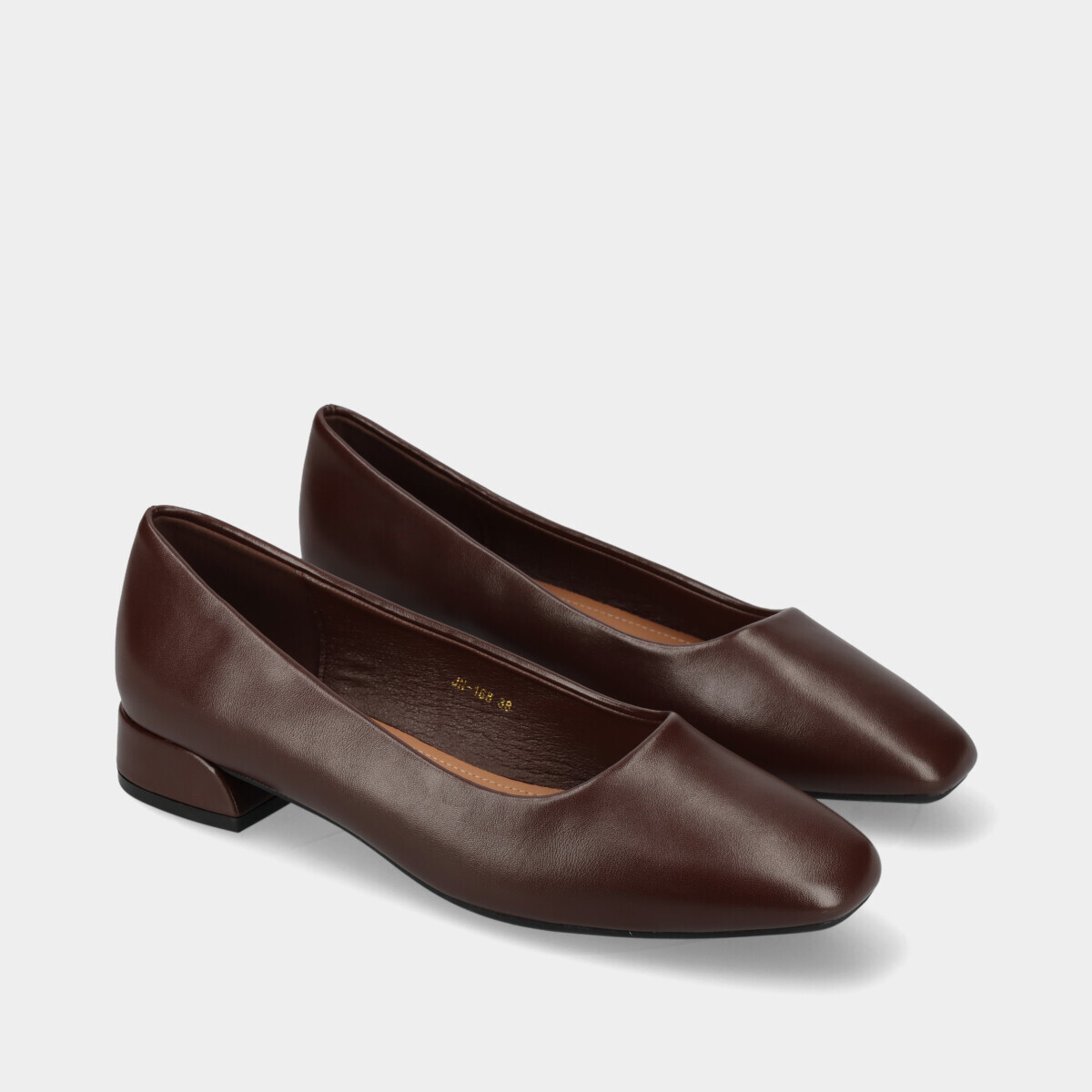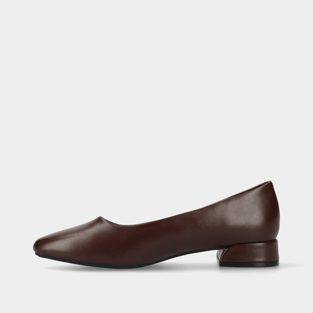 Sapato estilo sabrina em castanho para mulher, ideal para trabalho, com salto baixo, biqueira quadrada afunilada, parte superior flexível e palmilha confortável. Elegante, versátil e perfeito para o dia a dia.