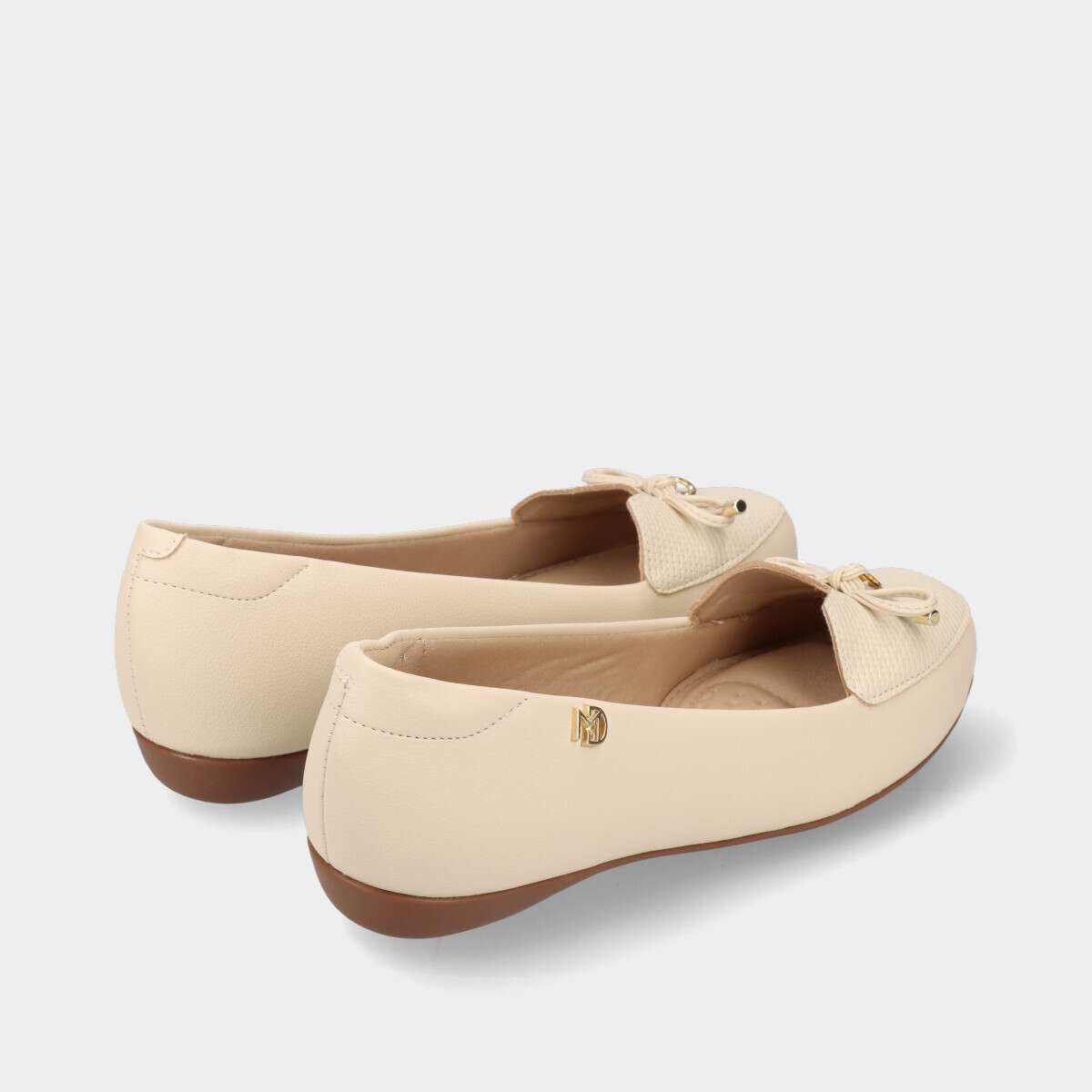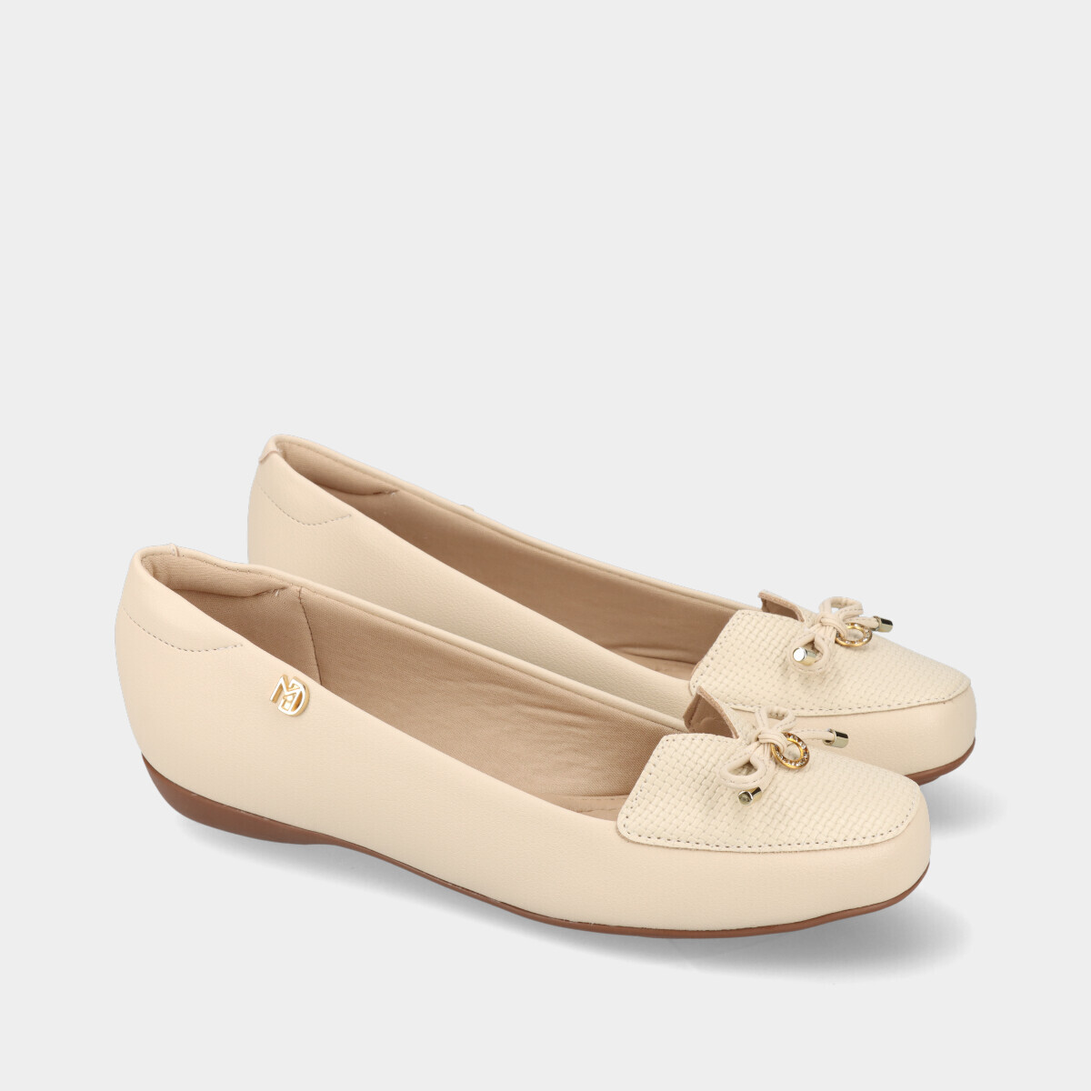 Sabrina ultraconfortável na cor creme, com ponta de acabamento texturizado e aplicação decorativa.