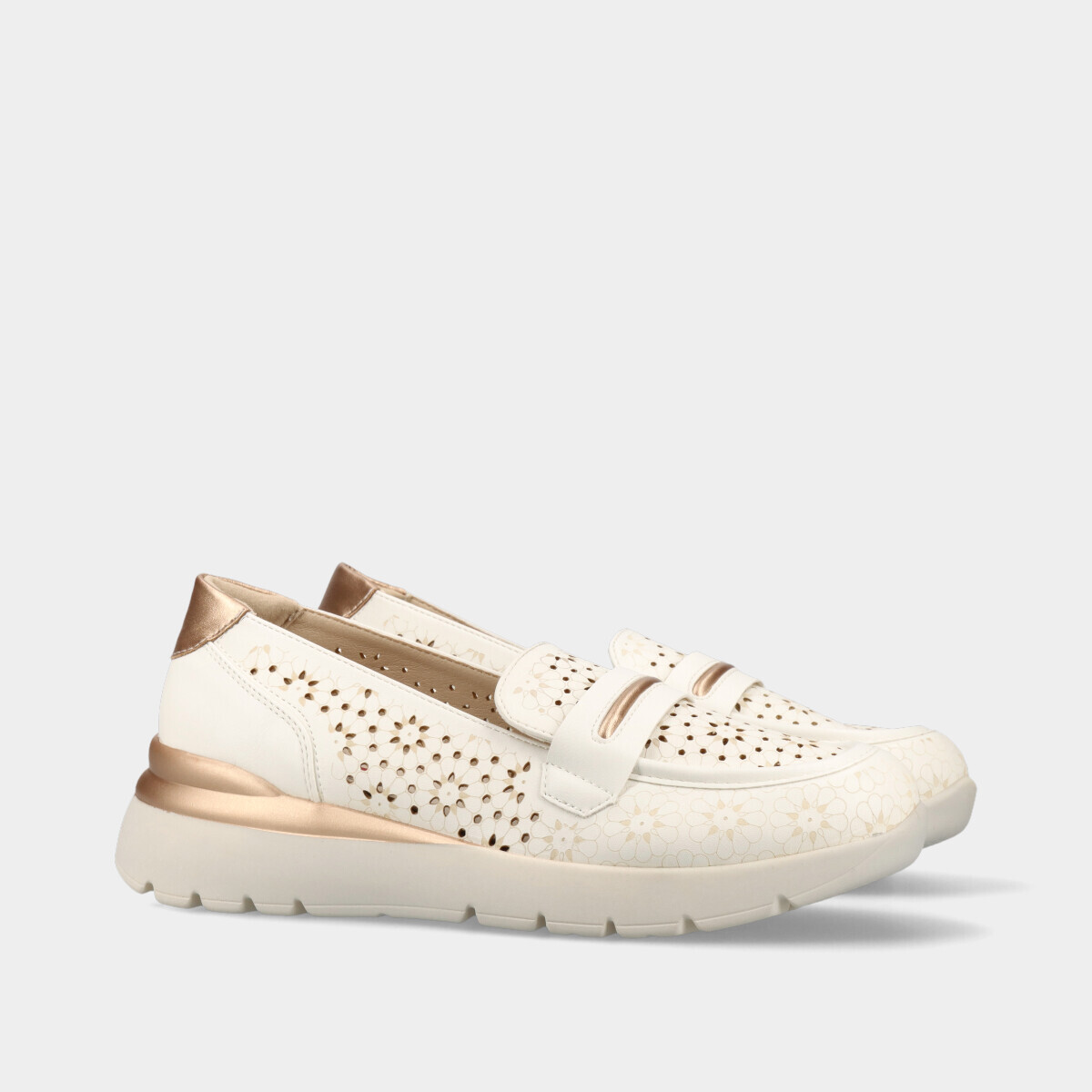 Mocassins para mulher em branco, leves e confortáveis, com perfurações que ajudam a manter o pé fresco e palmilha acolchoada para maior conforto ao caminhar. Sapatos femininos fáceis de calçar e versáteis, ideais para o dia a dia, passeios urbanos e looks casuais, oferecendo estilo, frescura e máximo conforto.