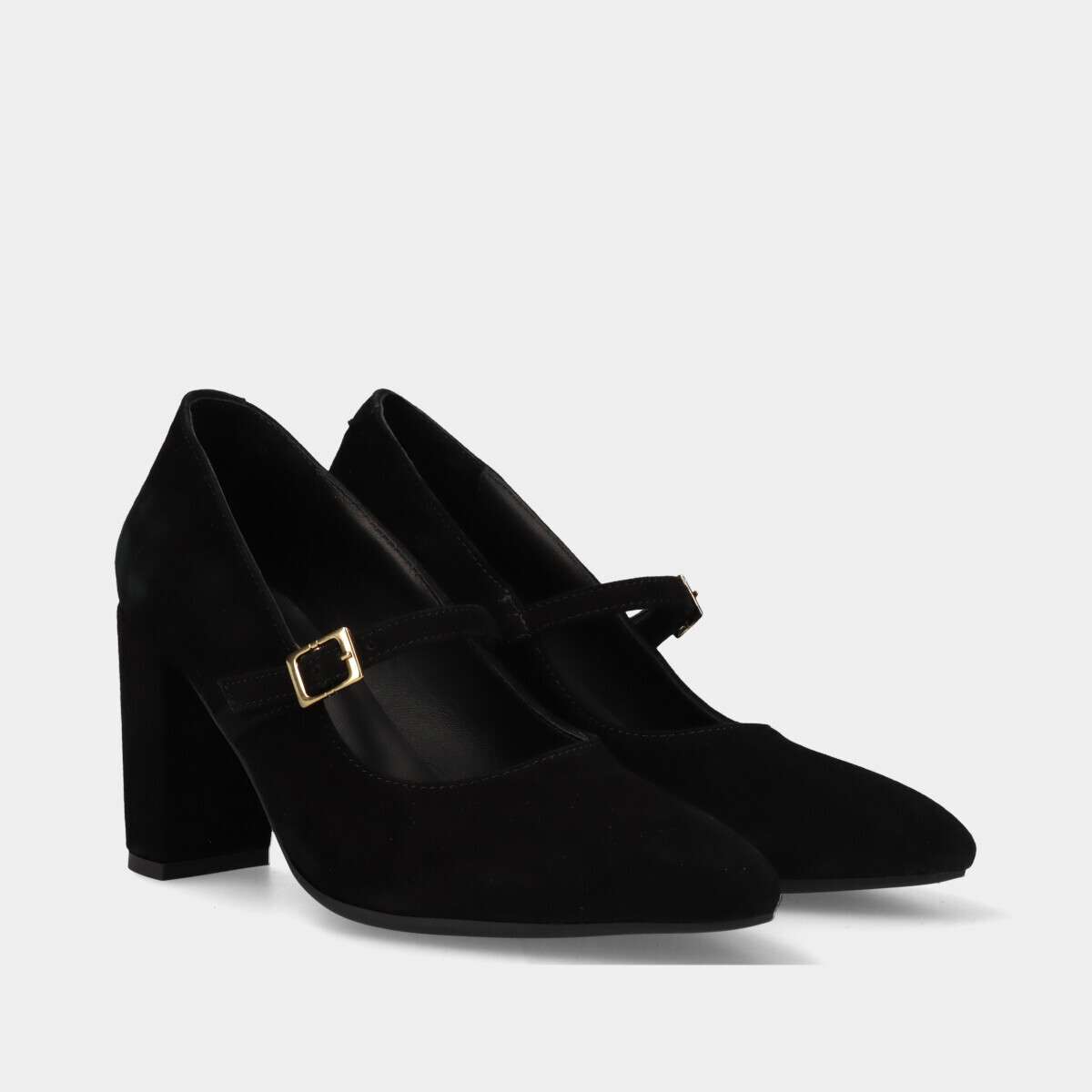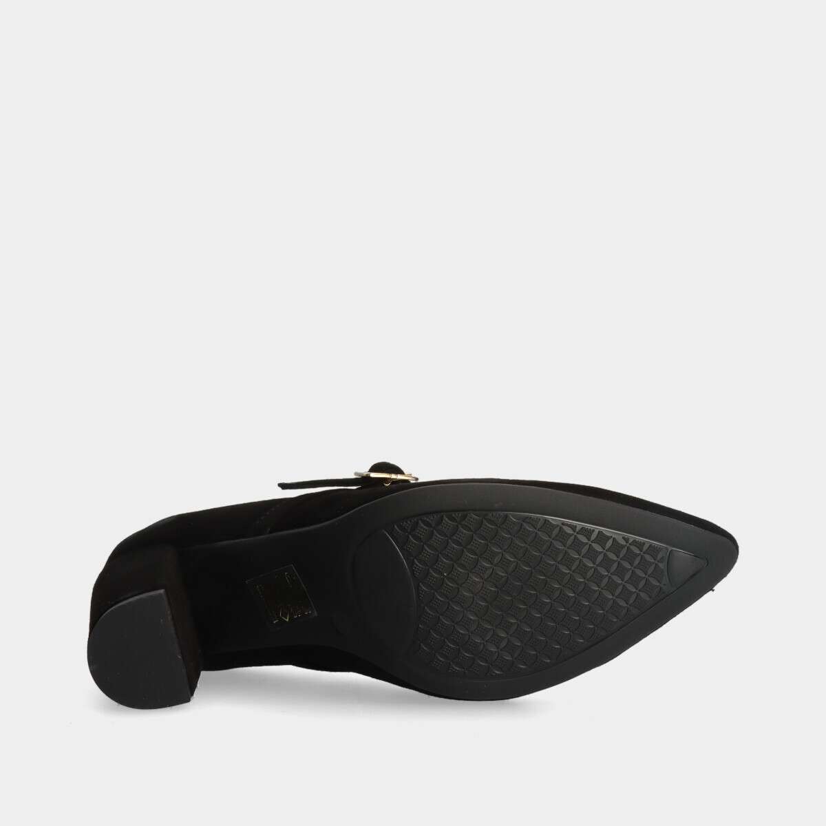 Sapato em pele nobuk na cor preta com fivela no peito do pé e sola em borracha para maior conforto. Fabricado em Portugal.