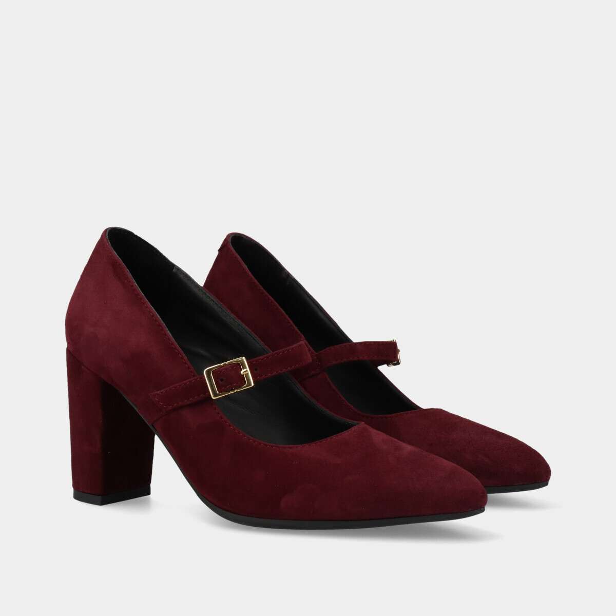 Sapato em pele nobuk na cor bordô com fivela no peito do pé e sola em borracha para maior conforto. Fabricado em Portugal.