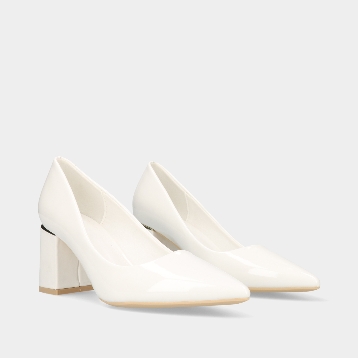 Estes sapatos de salto US em branco, com um elegante acabamento verniz, são um verdadeiro símbolo de estilo e sofisticação!