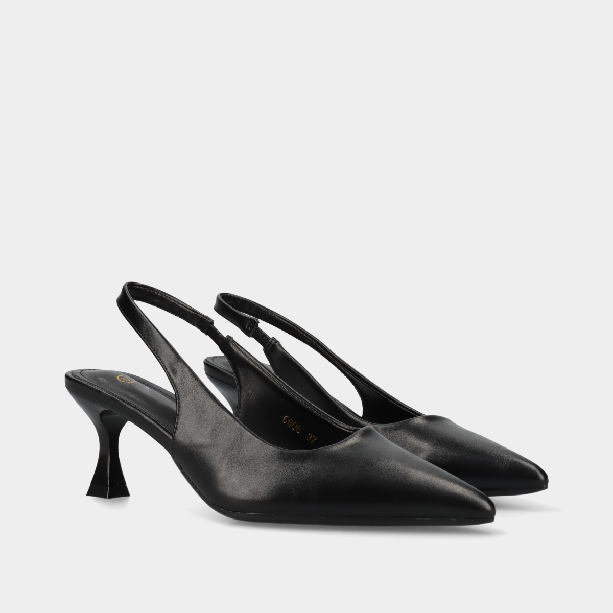 Sapato de salto preto com efeito pele, ponta em bico e tira com elástico. Modelo elegante com tacão fino, ideal para festas, cerimónias, eventos formais e ocasiões especiais. Sapato feminino sofisticado que combina conforto e estilo.
