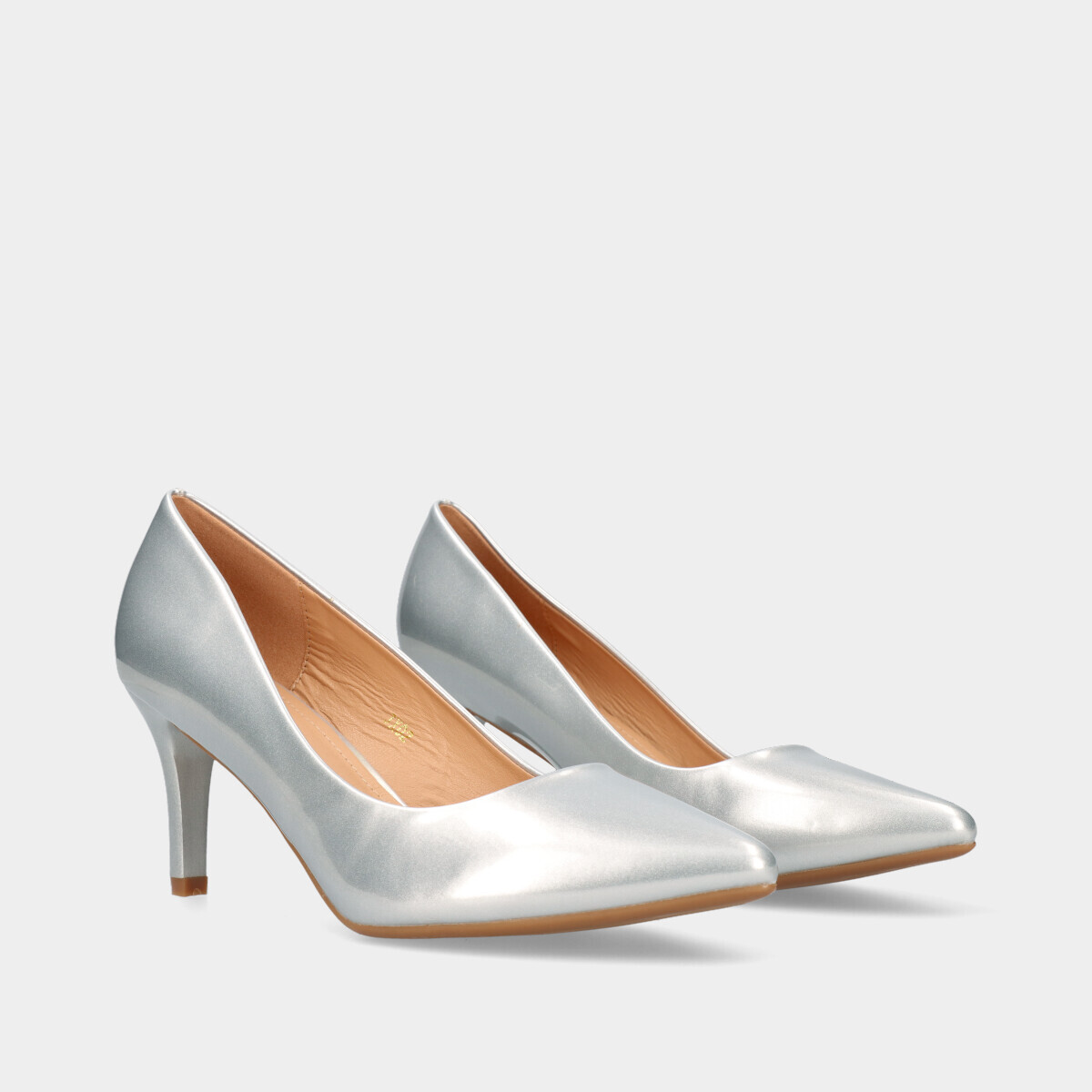 Dê um toque de elegância e glamour aos seus passos com os nossos deslumbrantes sapatos de salto stiletto em prata.
