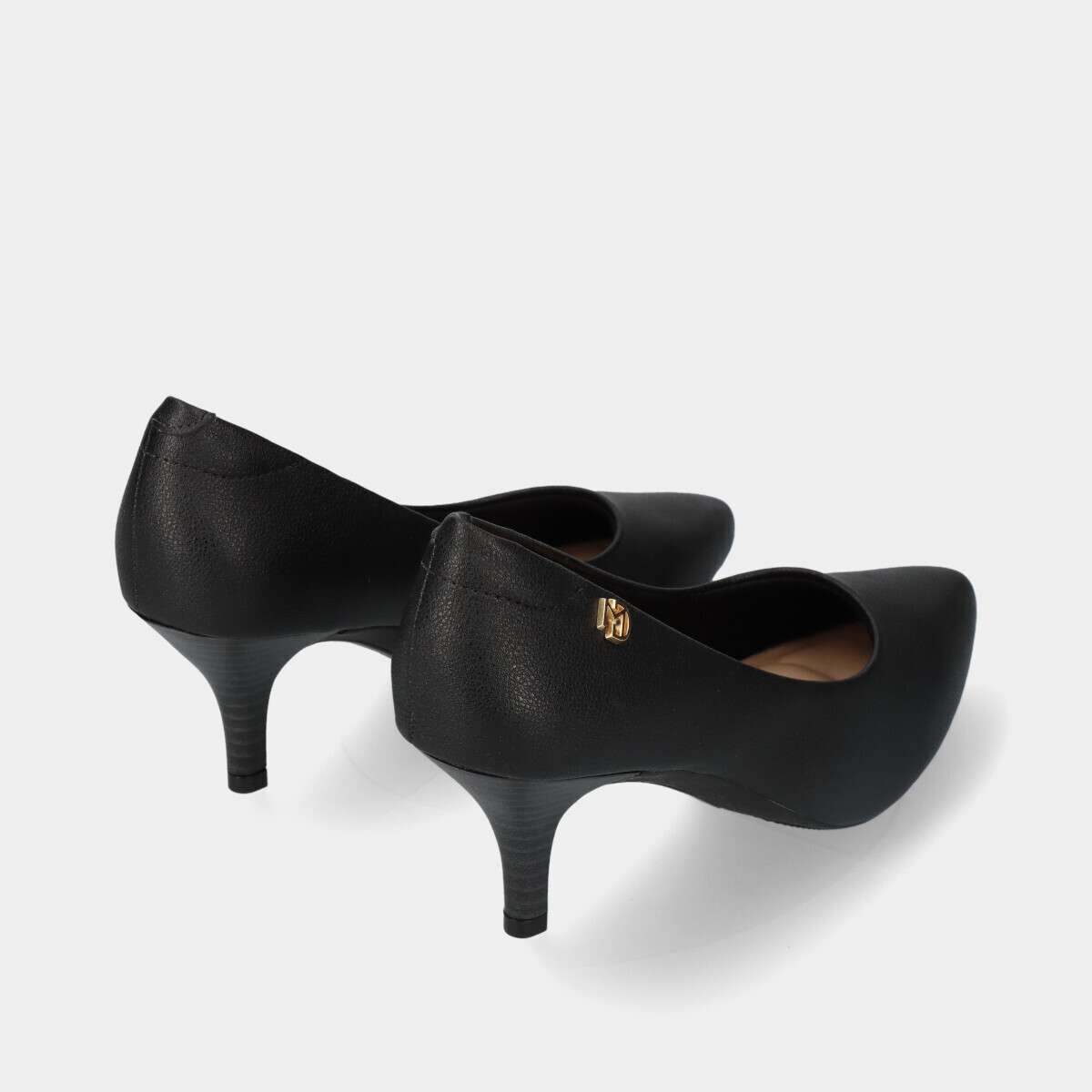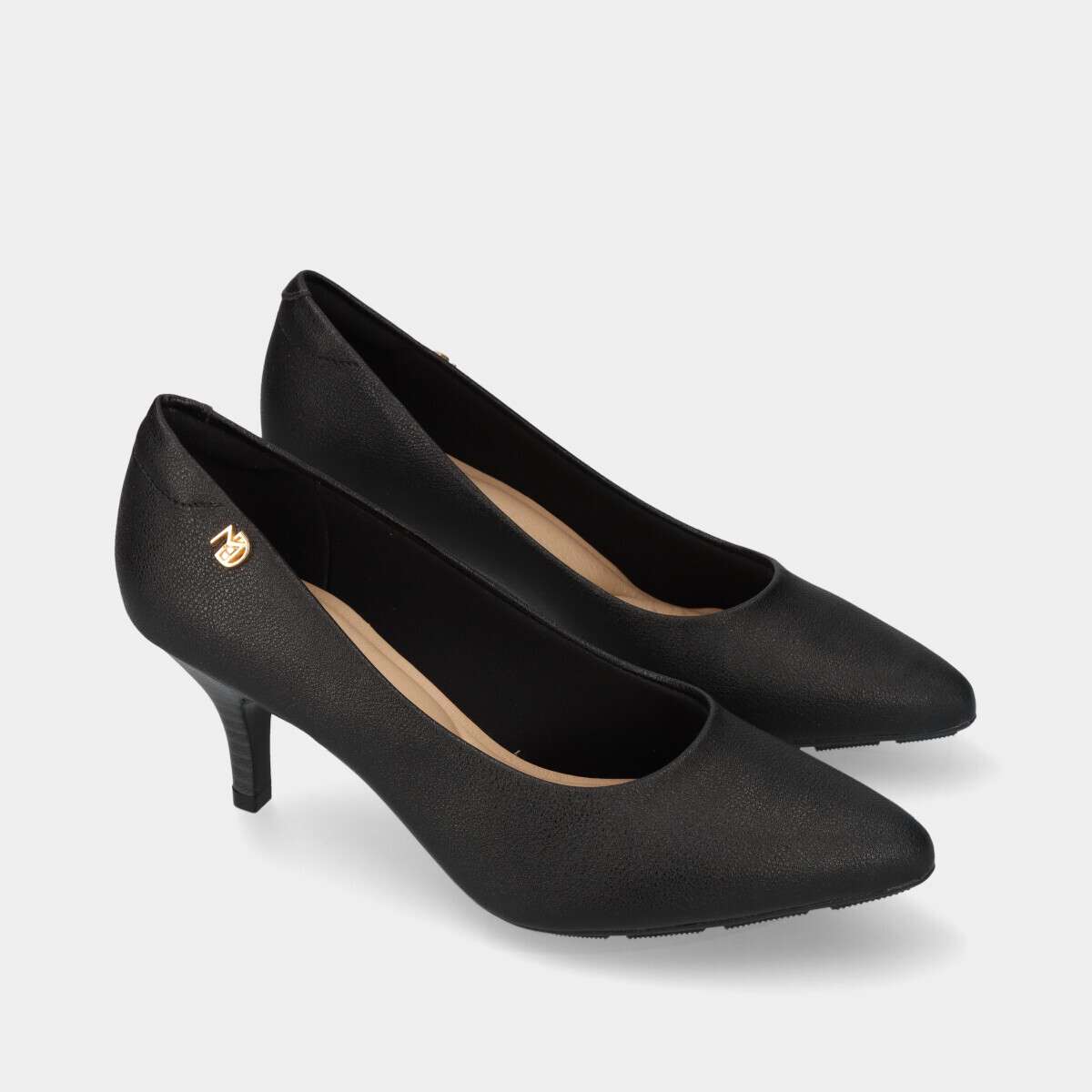 Sapato stiletto de salto médio na cor preta com palmilha de espuma extremamente confortável.
