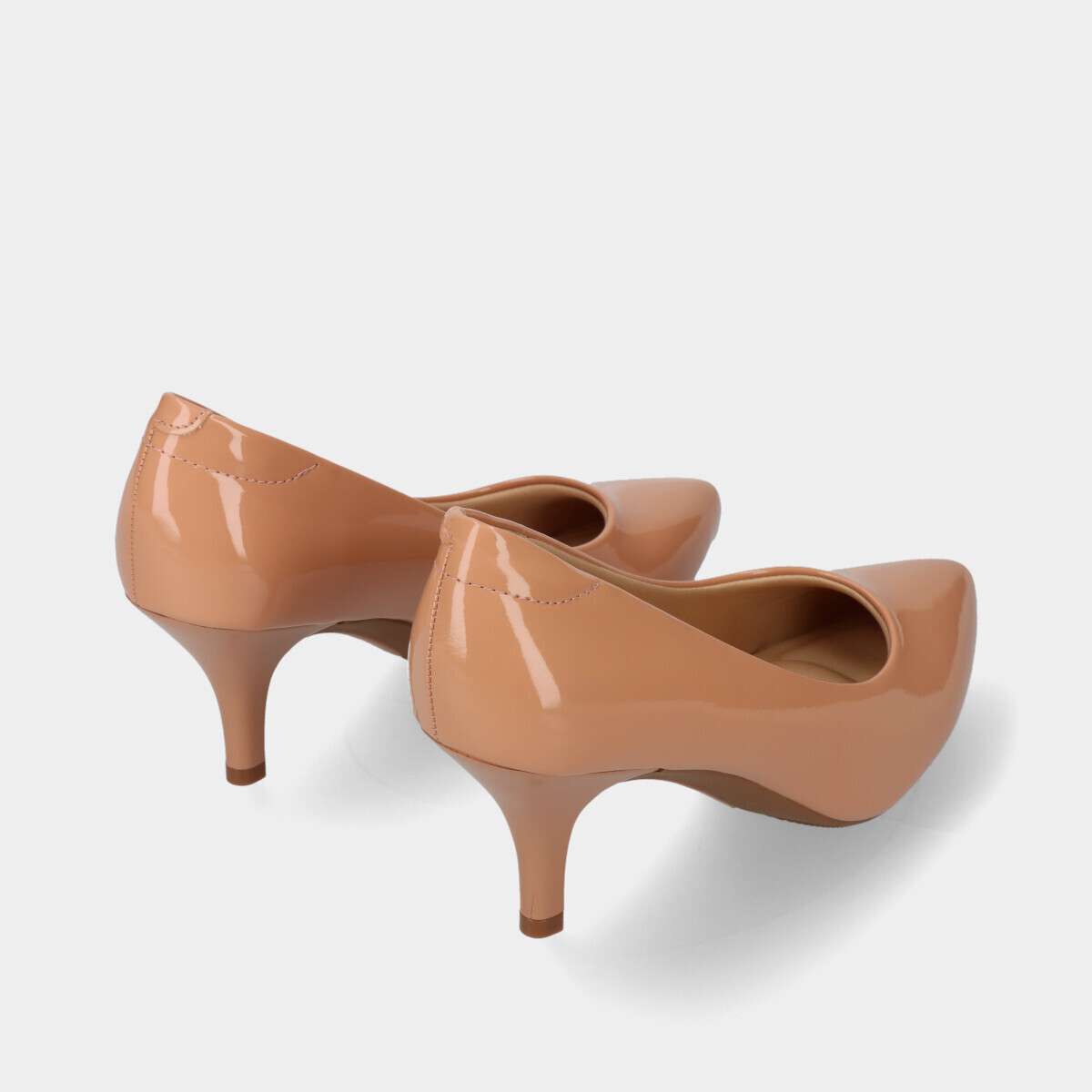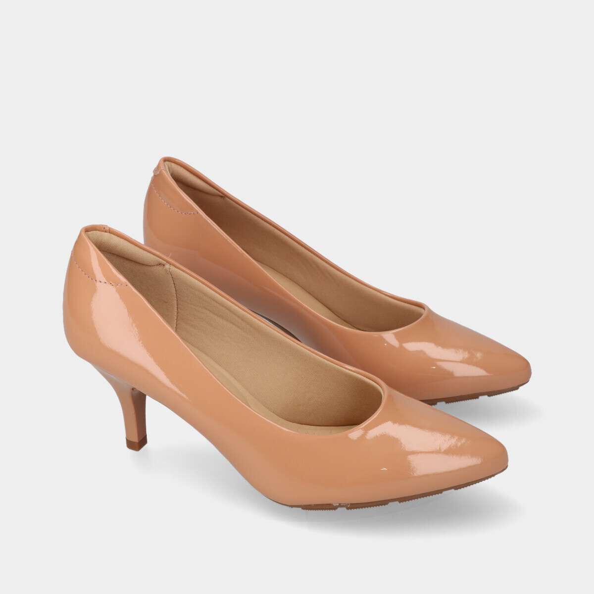 Sapato stiletto de salto médio na cor nude com palmilha de espuma extremamente confortável.