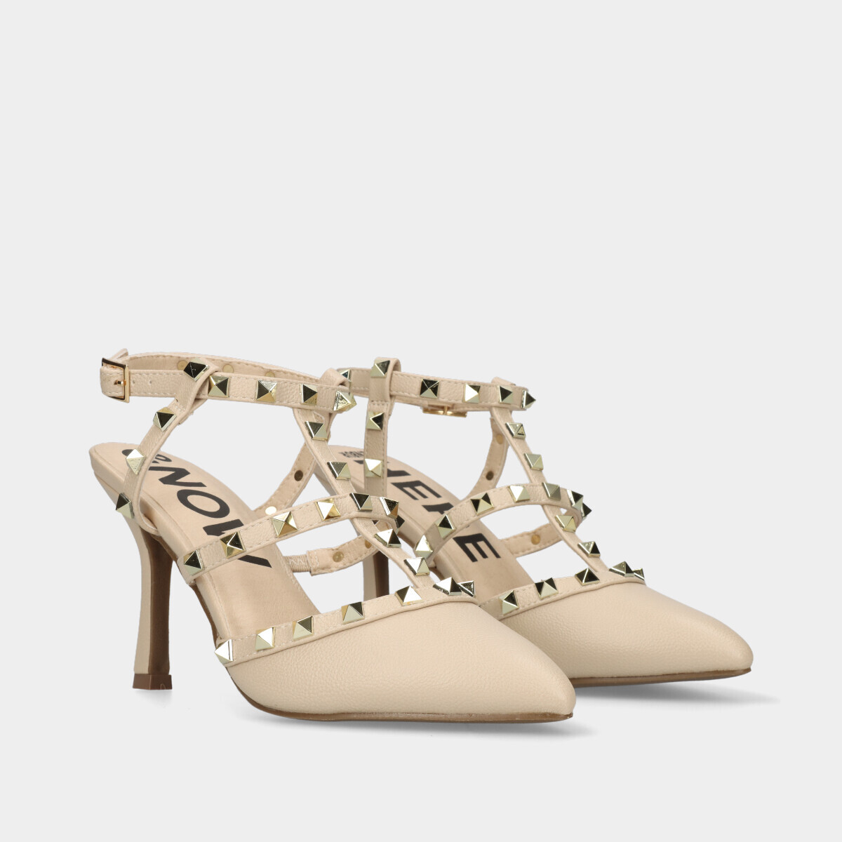 Menbur Pietas é mais do que apenas um sapato, é uma manifestação de versatilidade e estilo! Na cor bege suave e adornado com tachas douradas, este calçado desafia as convenções da moda, dividindo opiniões entre aqueles que o veem como um elegante sapato de salto e aqueles que o interpretam como uma sofisticada sandália. A sua capacidade de se adaptar a diferentes ocasiões e estilos torna-o uma escolha intrigante para quem procura algo além do comum. Seja como for interpretado, Menbur Pietas é um modelo único que certamente chamará a atenção e elevará qualquer look.
