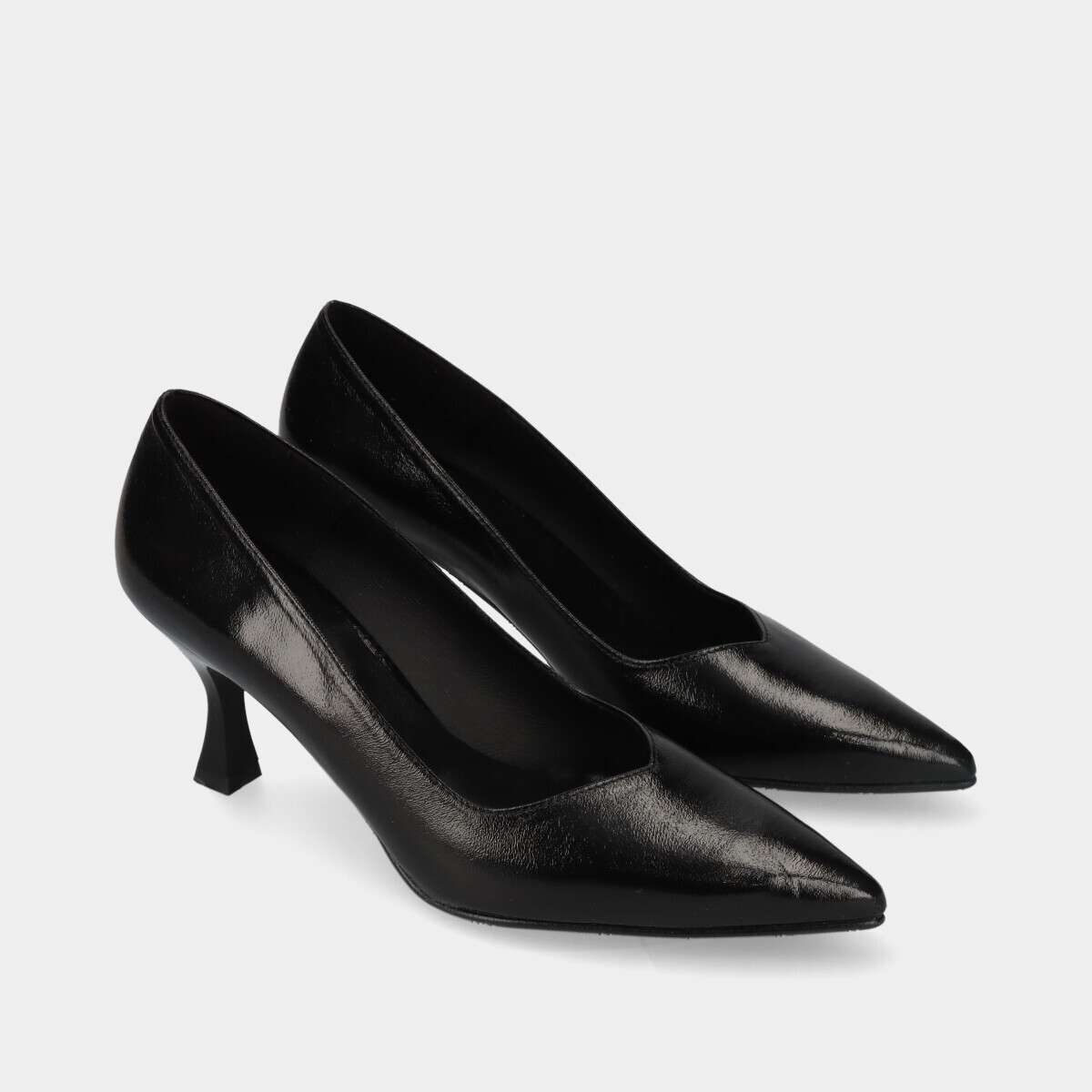 Sapato stiletto de salto médio na cor preta com palmilha em pele.
