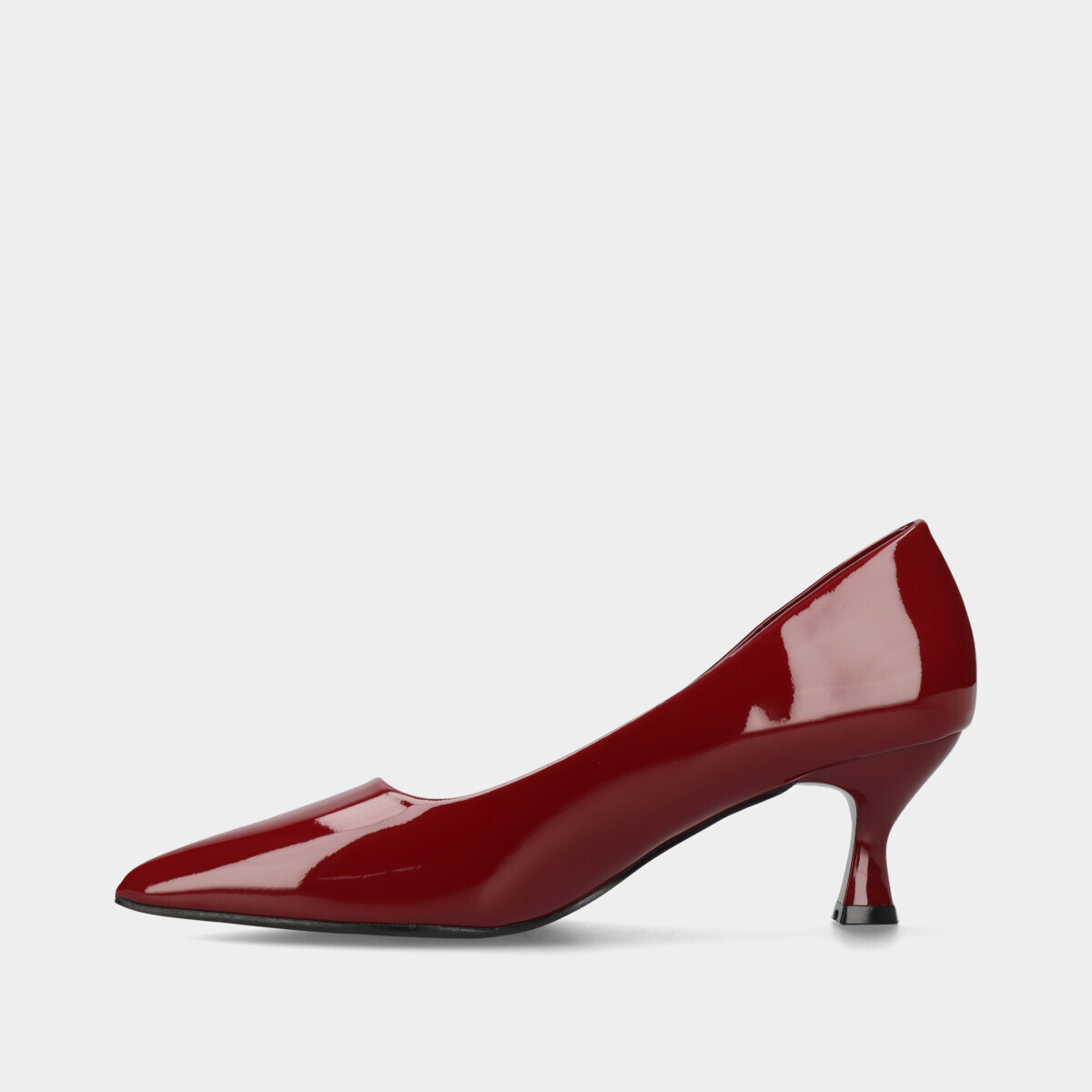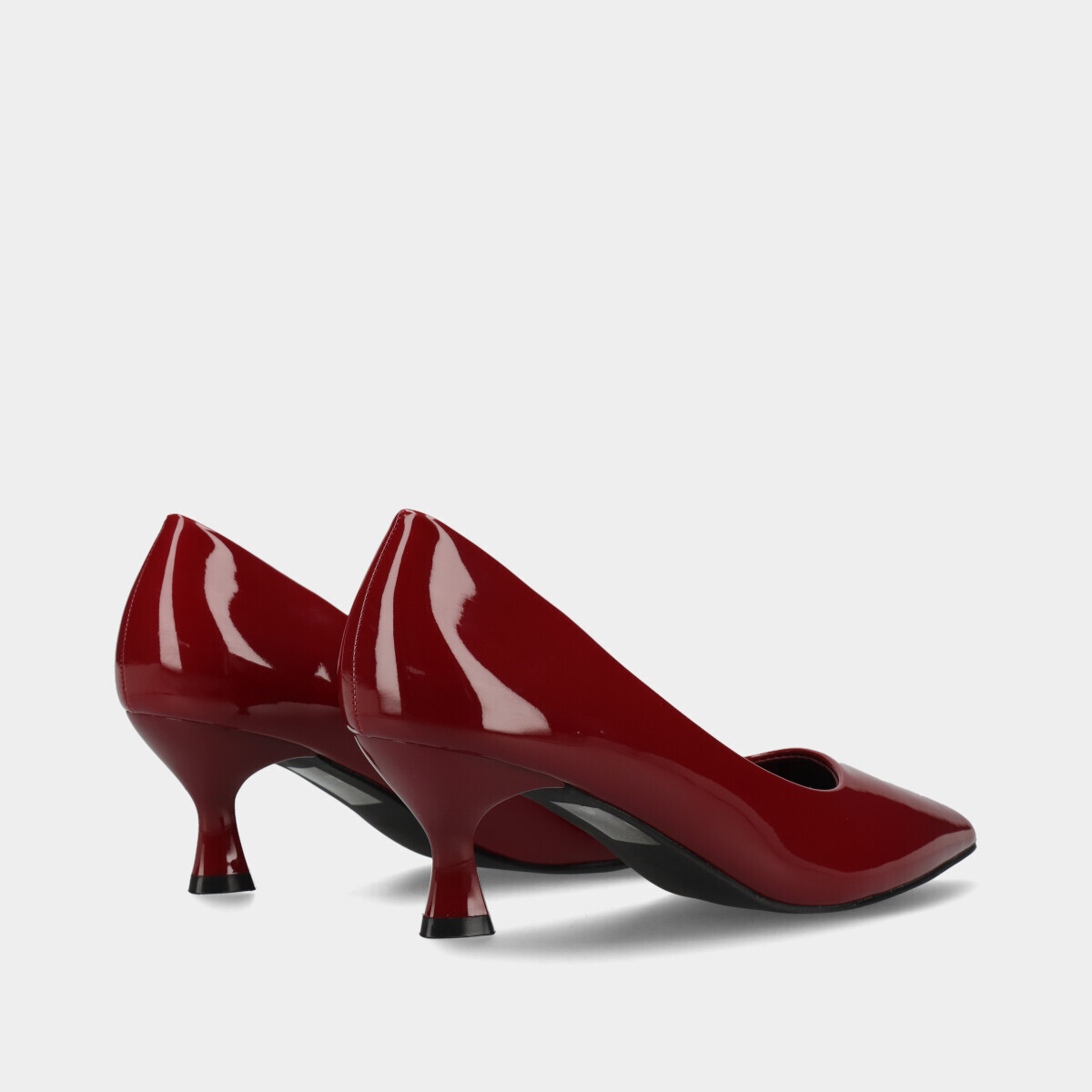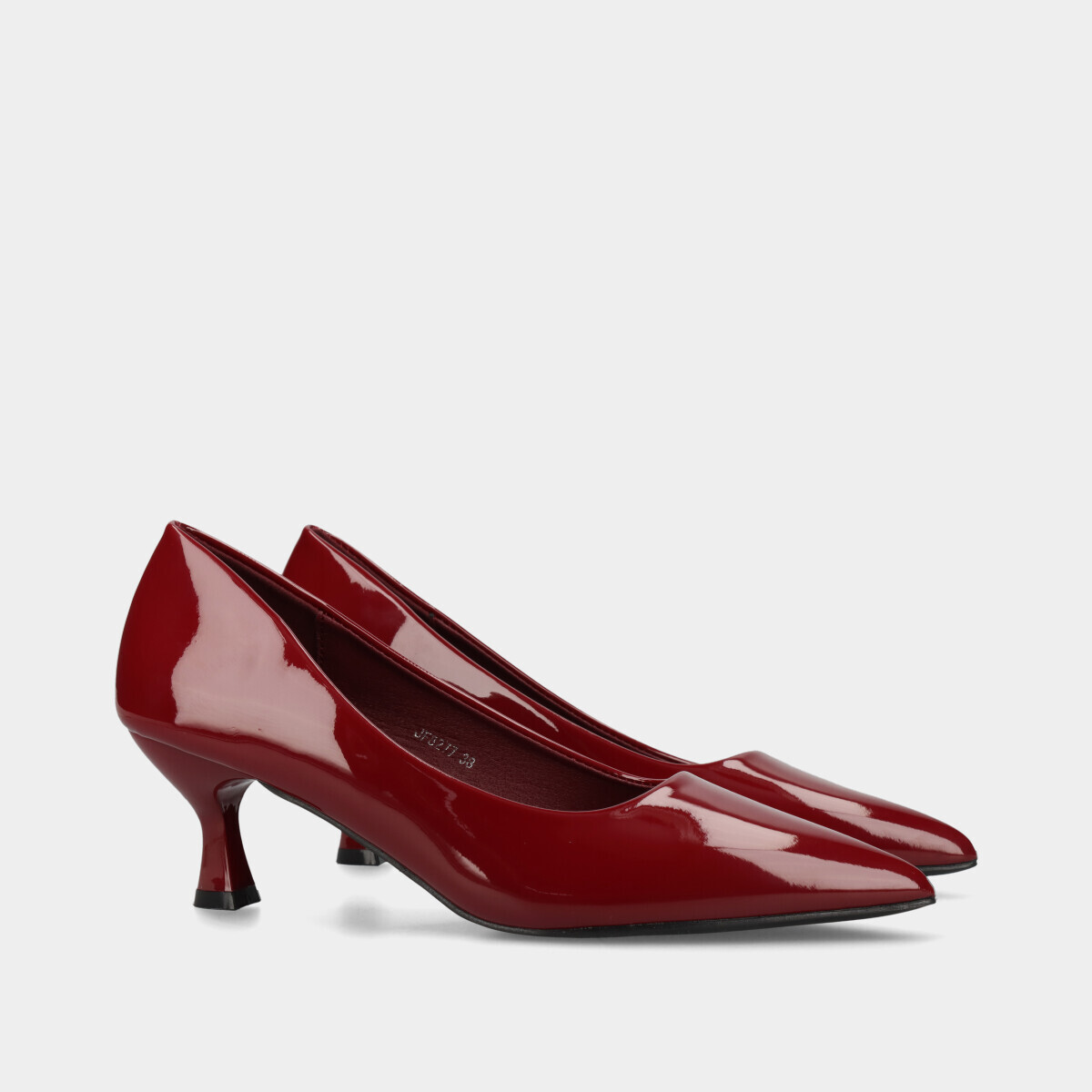 Sapato stiletto para mulher em bordô verniz, com salto médio e palmilha confortável.